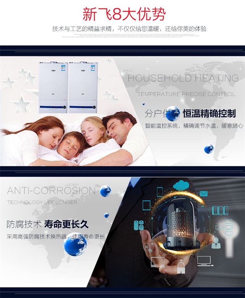 它其實相當(dāng)于一個小型的鍋爐,這我們采暖與生活熱供熱水的,它有內(nèi)、外兩套水循環(huán)系統(tǒng),外系統(tǒng)是由燃燒室對其直接加熱,屬于高溫區(qū),所以為我們提供采暖用水,一般設(shè)計定在六十度左右,看用的是地暖管還是暖氣片了,暖氣片高一點而地暖要低一點;而生活用水是內(nèi)系統(tǒng),是由采暖水熱交換所得,所以溫度會低一些,也正好是我們洗漱所需的溫度;